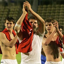 Цитата(ЮRock @ 12.5.2006, 6:43) Сборная России по футболу в финале чемпионата Европы!!! Думаете не реально???? Вполне... Правда если учесть, что это юношеская сборная!!! Но все таки, согласитесь, внушает!!!! Вчера смотрел полуфинал, наша сборная под управлением Игоря Колыванова (в прошлом сам игрок сборной) одержала победу над сборной Германии 1:0! Играли скажу я вам на высоте!!! Такую игру я бы хотел видеть в основной сборной, однако же.... В финале нас ждёт сборная Чехии!!! Предлагаю всем затариться пивом с чипсами/раками/рыбой (выбрать нужное) и заценить финальную игру!!!! Ждем только победы!!!! РОССИЯ ВПЕРЕД!!!!!!!!!!!!!!!!! A kogda final? -------------------- I love NY